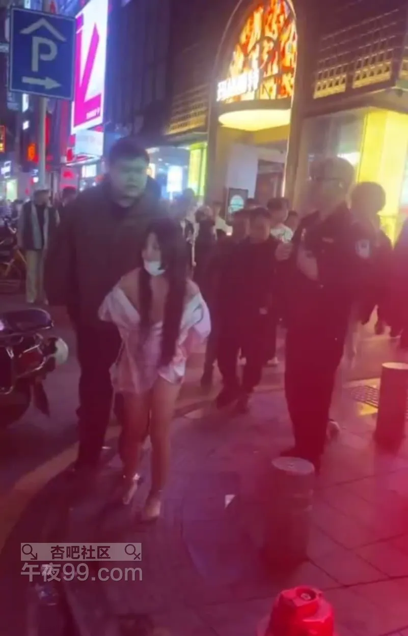 长沙解放西路 真空粉睡衣奶罩妹 当街漏奶 被警察当场拖行逮捕!
